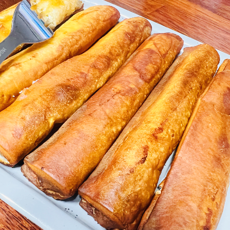 냉동 생지로 크림 프레첼도 구워봤어요. 예열 후 조리했는데, 온도 조절이 다이얼 방식이라 살짝 오버쿡 되긴 했지만 속은 잘 익고 겉은 바삭해서 만족스러웠어요.